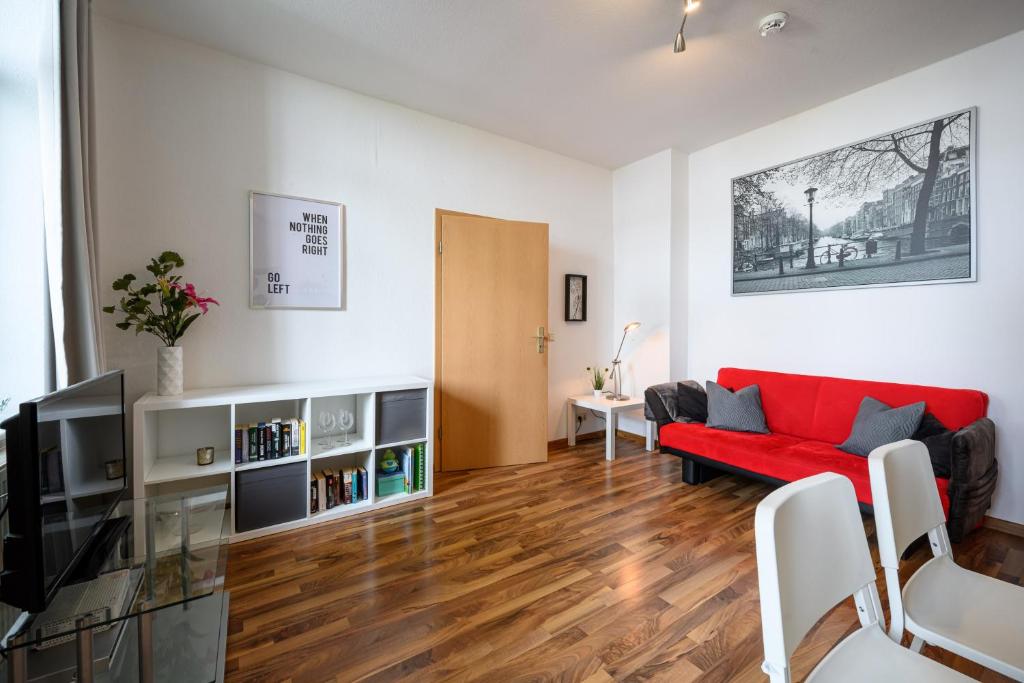 Die Wohnung ist in Magdeburg/Sudenburg gelegen, ruhig im EG mit Terrasse (auf der geraucht werden darf) im kleinen Innenhof. Sie besitzt ein schönes Doppelbett (1,60 x 2,00) und eine Schlafcouch und kann somit für bis zu 4 Personen genutzt werden. Viele Einkaufsmöglichkeiten, Bäcker und Restaurants befinden sich in unmittelbarer Umgebung. Parken kann man direkt um den Block. Durch die Anbindung mit der Straßenbahn steht einer ausgiebigen Stadterkundung nix im Weg und viele Sehenswürdigkeiten, wie das Hundertwasserhaus und der Dom, sind schnell erreicht. Ruhe und Erholung findest Du selbstverständlich auch – z.B. bei einem Spaziergang oder einer Radtour an der Elbe. Für die Kleinsten gibt es einen wunderbaren großen Spielplatz mit Klettertürmen und Rutschen schräg gegenüber.