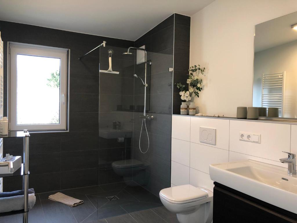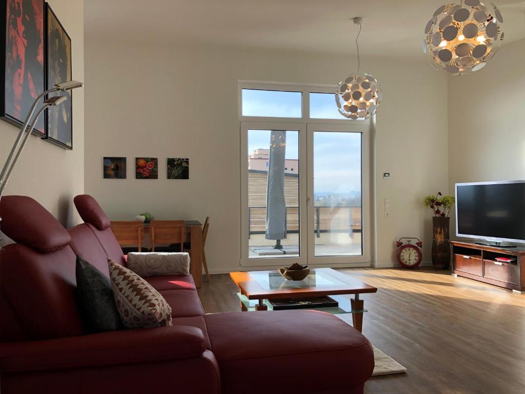 UNSER APARTMENT „Attika“ IM DETAIL: Diese helle und exklusive 2-Zimmer Neubauwohnung im Attikageschoss liegt in Grenzach-Wyhlen in Südbaden und bietet einen schönen Ausblick auf die Stadt Basel. Sie erreichen die Wohnung ganz bequem und barrierefrei mit dem Aufzug. Das Apartment besticht durch den großzügigen Wohnraum, der durch die großen Fenster und hohen Decken lichtdurchflutet und sehr ansprechend wirkt. Das Wohnzimmer bildet mit der Küche und dem Essbereich einen offenen Wohnraum mit Esstisch, Ledersofa und einem 55" Flatscreen-LED Smart TV. Die Küche ist komplett ausgestattet und lässt keine Wünsche offen. Sämtliche hochwertige Elektrogeräte von Miele sind in der modernen Qualitäts-Einbauküche verbaut. Im modern ausgestatteten Tageslichtbad stehen Ihnen Waschtisch, schwellenfreie Walk In-Dusche und ein elektr. Handtuchheizkörper zur Verfügung. Ein Highlight der Wohnung ist die grosse, sonnendurchflutete Terrasse in Süd-West Ausrichtung mit edlem, multifunktionellem Comfort Lounge-Set, einem Weber Gasgrill und Ampelschirm zum Entspannen. Hier geniessen Sie den Sonnenuntergang mit schöner Aussicht. Es steht Ihnen ein überdachter Carport-Stellplatz zur Verfügung.