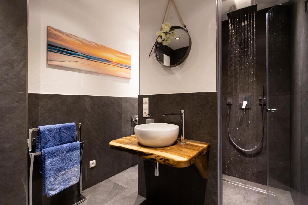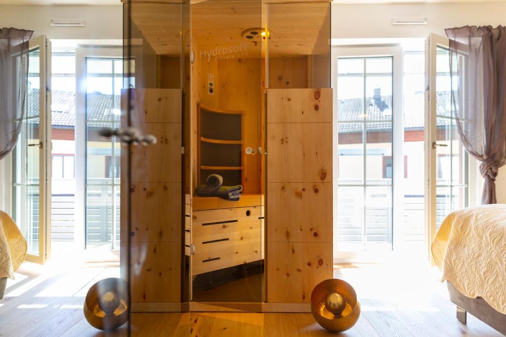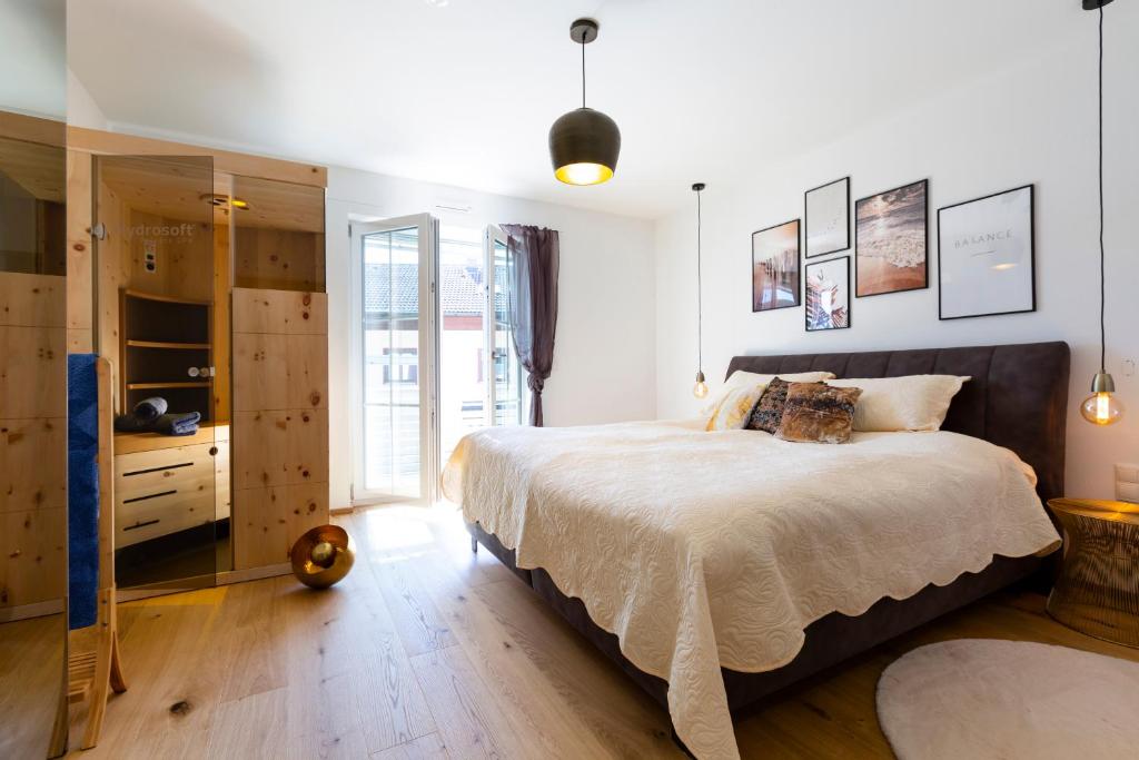 Die hochwertig eingerichtete Suite im modernen Alps-Lodge-Stil liegt zentral in Übersee am Chiemsee ist daher perfekter Startpunkt für Ihren Ausflug an den See oder in die Berge und Sie kommen schnell zu Restaurants und Einkaufsmöglichkeiten. Die Ferienwohnung wurde dieses Jahr (2020) neu errichtet. Besonders einladend ist im Herz der Wohnung die schwenkbare Lounge Couch mit genialem Blick in die Berge zum geselligen Austausch mit Freunden. Wenn Sie sich zurückziehen möchten, bieten die 2 getrennten Wohlfühlschlafzimmer absolute Privatsphäre und haben einen direkten Zugang zu einem eigenen Bad mit neuestem Standard. Im Master-Bedroom können Sie in der Zirbenholz-Dampfsauna die Seele baumeln lassen. Es erwarten Sie kreislauffreundliche Saunagänge wie in den Tropen! Schallschutzfenster und Belüftungsanlage sorgen zusätzlichen (Schlaf)-Komfort im Apartment. Die Ad Fontes Suite ist die Quelle für Freigeist, Genuss, Romantik & Reiselust.
