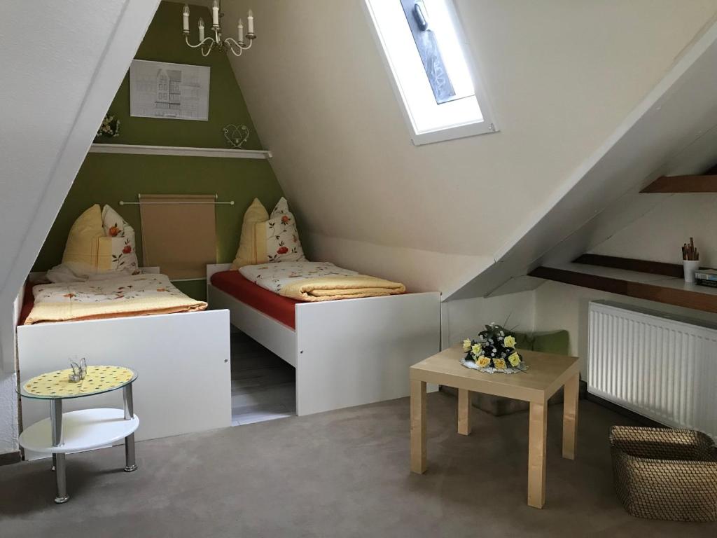 Sehr verehrte Gäste, unser Apartment Adlerhorst besticht durch seine große Dachterrasse mit einem einzigartigen Blick auf sämtliche Sehenswürdigkeiten Cochems. Genießen Sie eine Auszeit in diesem Ferienapartment mit Charme. Seine einzigartige Raumaufteilung lässt besonders Kinderherzen höher schlagen! Direkt unter dem Spitzdach mit Blick auf die Mosel befinden sich zwei Einzelbetten, während unter der Schräge drei weitere Schlafplätze (davon zwei zusammenliegend) befinden. Lassen Sie sich vom Flair dieses besonderen Apartments überzeugen.