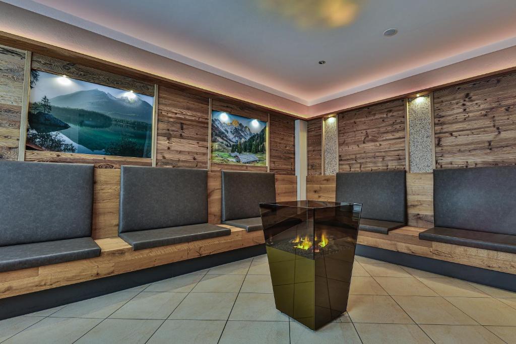 Entspannen Sie sich im Wellnessbereich des Alpenhotels, in dem Sie einen Innenpool, eine finnische Sauna, eine Bio-Sauna, ein Dampfbad und einen Whirlpool finden.