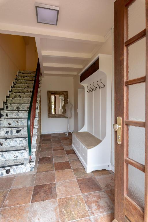 Die wunderschöne alte Dorfschule wurde wunderschön renoviert, und mit geschmackvollem und hochwertigem Mobiliar ausgestattet. Das alte "Klassenzimmer"- eine Ferienwohnung für 4 Personen (2 Schlafzimmer, 1 Bad) mit einer Größe von ca.90qm befindet sich in der rechten Haushälfte. Sie betreten das Apartment durch einen eigenen Eingang und gelangen über einen stilvollen eingerichteten Flur in den Wohnbereich. Zum großen, hellen Wohnraum mit TV gehört eine separierte offene Küche mit Sitzecke und gemütlichen Erker. Des weiteren befinden sich in der unteren Etage ein großzügiges Schlafzimmer mit einem Doppelbett, Kleiderschrank und ein TV. Ein Duschbad mit WC bieten jeden Komfort. Jeder Raum hat große Fenster und ist somit herrlich Lichtdurchflutet. Über den Flur gelangt man in das Obergeschoss mit 2 weiteren Schlafplätzen. Im geschützten Garten stehen ein Strandkorb, Gartenmöbel, Liegen, Sonnenschirm und Gasgrill stehen zur Verfügung. Parkplätze befinden sich am Haus.