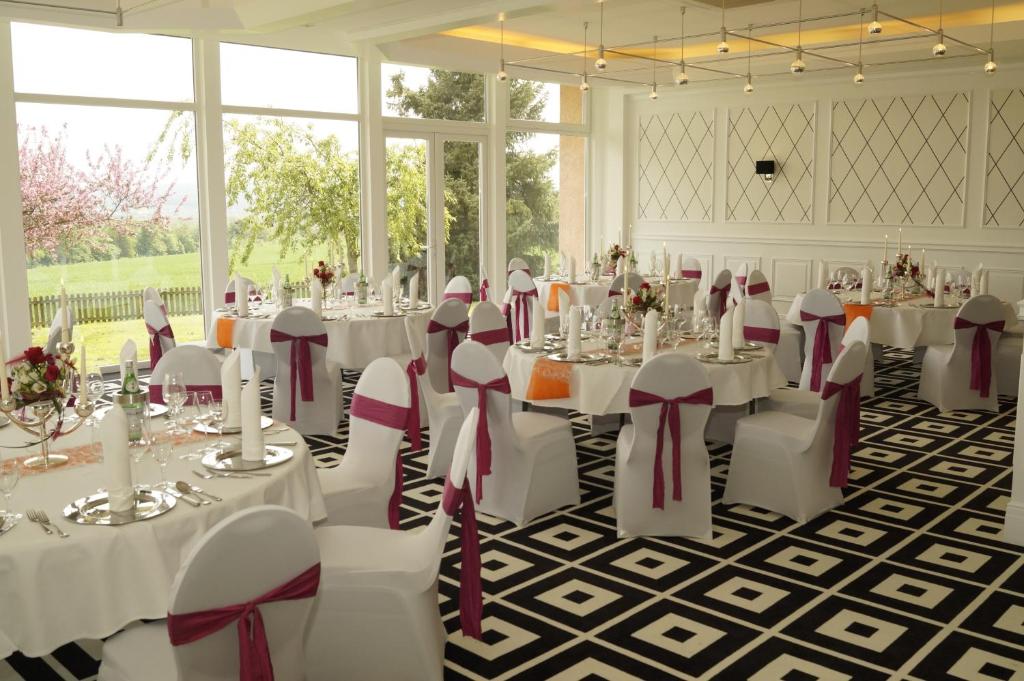 Das Restaurant des Zollhaus ist mit Holzmöbeln und einem offenen Kamin eingerichtet. Das Frühstück wird im Bistro oder auf der Terrasse mit Blick auf das Wesergebirge serviert.