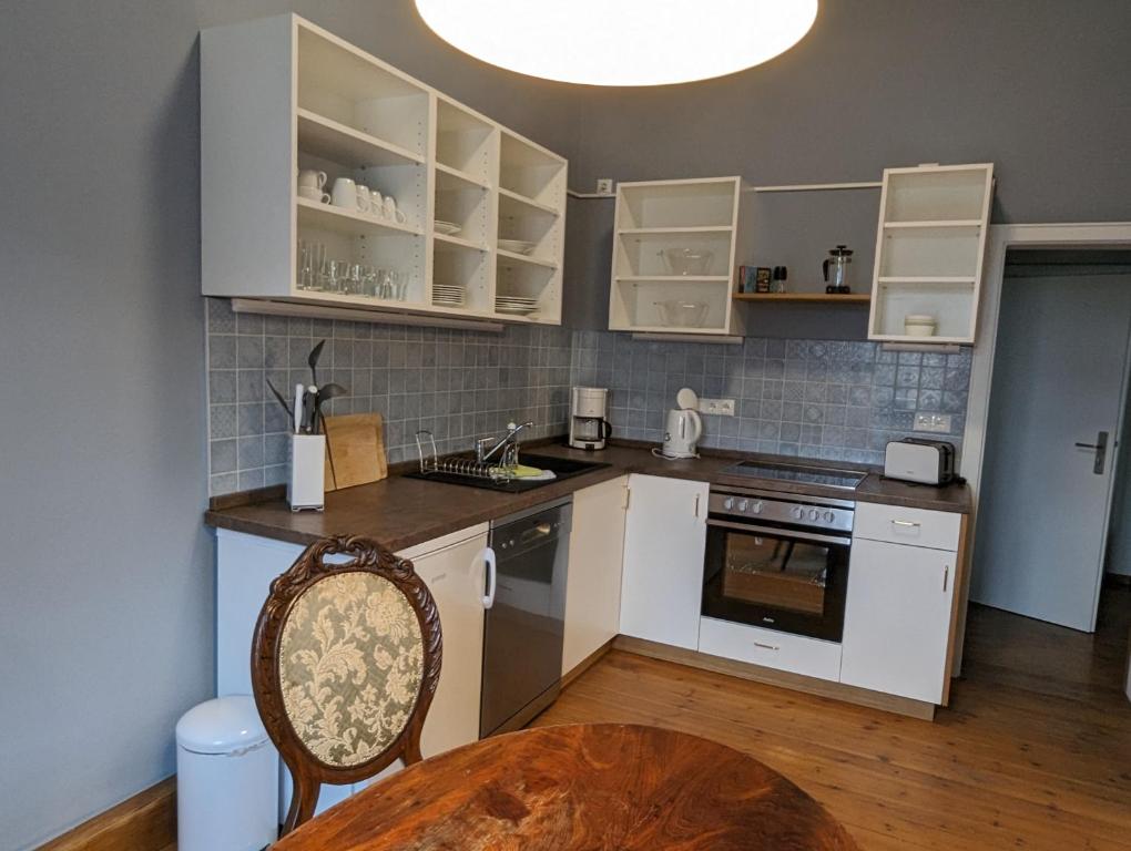 Das Altstadt Palais befindet sich im Zentrum von Weimar. Das Apartment ist in modernem Stil eingerichtet und verfügt über kostenfreies WLAN. Darüber hinaus verfügt das Apartment über Sat-TV, einen Sitzbereich und eine voll ausgestattete Küche mit einem Geschirrspüler und einer Mikrowelle. Das eigene Bad bietet eine Dusche, und ein Haartrockner liegt ebenfalls für Sie bereit. Im Umkreis von 10 Gehminuten um die Unterkunft herum erreichen Sie außerdem eine breite Palette an Restaurants, Cafés und Bars. Das Altstadt Palais befindet sich 3,6 km vom Schloss Belvedere und 200 m von Goethes Haus mit dem Goethe Nationalmuseum entfernt. Das Bienenmuseum erreichen Sie in 25 Minuten zu Fuß. Der Bahnhof Weimar Berkaer liegt 15 Gehminuten entfernt.