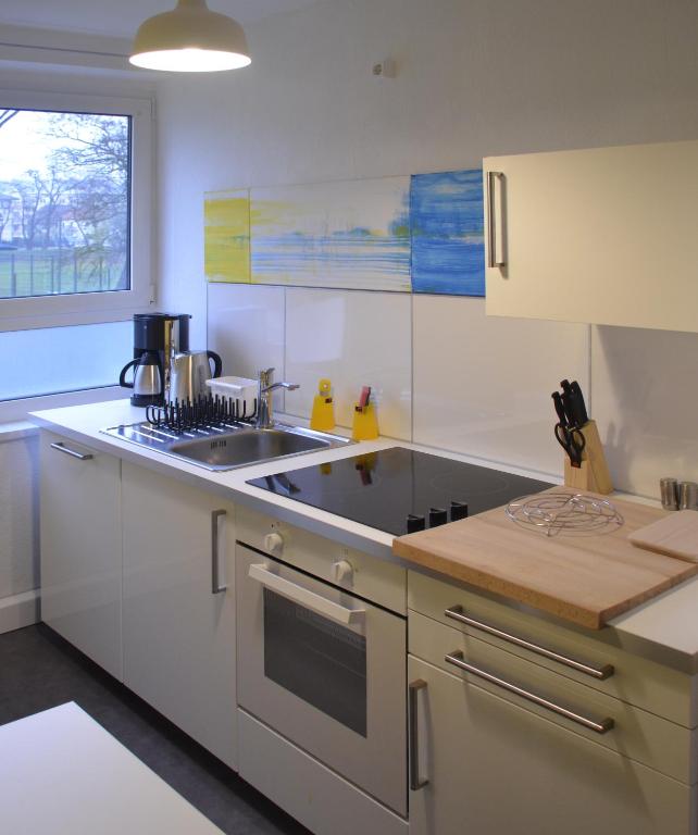 Nur 3 Gehminuten von der Elbe entfernt erwartet Sie das helle, moderne Apartment F2 - Am alten Elbarm - Laubegast. Die Unterkünfte zur Selbstverpflegung verfügen über einen eigenen Balkon und kostenfreien Internetzugang. Das geschmackvoll gestaltete Wohnzimmer ist in Weiß- und Grautönen gehalten und verfügt über ein Sofa und einen Flachbild-TV. Das Bad ist lichtdurchflutet und mit einer Badewanne ausgestattet. Verschiedene Restaurants und Lebensmittelgeschäfte sind weniger als 600 m entfernt und Sie können Ihre eigenen Mahlzeiten in der Küchenzeile zubereiten. Es verfügt über einen Backofen und einen Geschirrspüler sowie ein Wohnzimmer mit einem Esstisch. Wenn Sie die Sehenswürdigkeiten Dresdens erkunden möchten, erreichen Sie das Zwinger und das historische Museum Grünes Gewölbe sowie die Frauenkirche nach nur 17 Fahrminuten. Die Unterkunft bietet kostenfreie Parkplätze und liegt 6 km vom Hauptbahnhof Dresden entfernt.