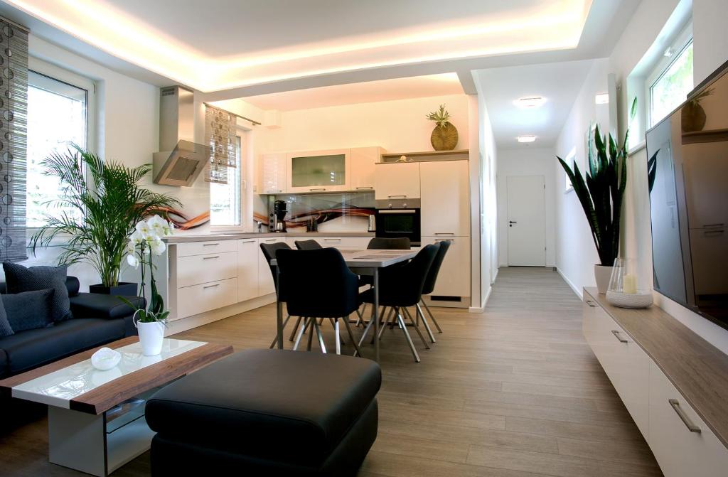 Mit kostenlosen Fahrrädern, einem Garten und einer Terrasse bietet die Unterkunft Am Schmeding Übernachtungsmöglichkeiten in Berlin mit kostenlosem WLAN und Gartenblick. Diese Ferienwohnung bietet kostenlose Privatparkplätze und einen Zimmerservice. Diese Ferienwohnung besticht durch einen Blu-ray-Player, hat eine Küche mit einem Kühlschrank, einem Geschirrspüler und einem Ofen, ein Wohnzimmer, einen Essbereich, 2 Schlafzimmer und 2 Badezimmer mit einer Dusche. Es gibt einen Flachbild-TV mit Kabelkanälen, einen DVD-Player sowie einen Laptop und einen CD-Player. Die Mitarbeiter an der rund um die Uhr besetzten Rezeption der Unterkunft Am Schmeding können Gästen Informationen geben. Die Unterkunft Am Schmeding bietet einen Grill. Die Sehenswürdigkeit U-Bahnhof Alexanderplatz liegt 10 km von der Unterkunft Am Schmeding entfernt, während die Sehenswürdigkeit Alexanderplatz 11 km von der Unterkunft entfernt ist. Der nächstgelegene Flughafen ist der Flughafen Berlin Brandenburg, 22 km von der Unterkunft Am Schmeding entfernt. Die Unterkunft bietet einen kostenpflichtigen Flughafentransfer.
