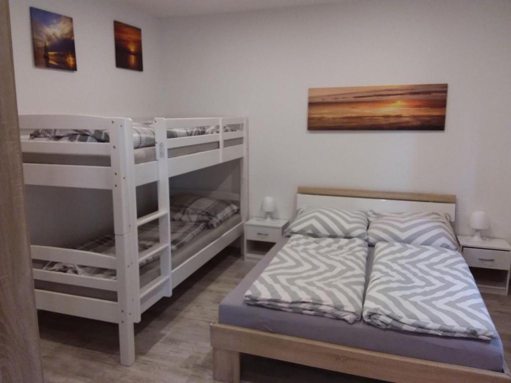 Bitte beachten Sie, dass eine eventuell anfallende Kurabgabe nicht im Gesamtpreis enthalten ist. Diese ist vor Ort zu leisten. Please note that the total price does not include any spa tax. This has to be paid on site. Helle freundliche Wohnung, 3 Zimmer,Küche und Bad Wlan Tv Wohnzimmer mit Schlafcouch 2 Schlafzimmer mit Bett 140x200cm Küche mit gemütlicher Essecke, Backofen Kühl- Gefrierkombination,Mikrowelle und Geschirrspüler Duschbad Terasse mit Grillmöglichkeit Die Amera Ferienwohnung wurde 2019 komplett renoviert und neu gestaltet. Es ist eine helle freundlich eingerichtete Wohnung um im Urlaub einfach mal die Seele baumeln zulassen. Die Amera Ferienwohnung ist wie folgt aufgeteilt: Küche mit Essbereich ausgestattet mit einer Kühl-und Gefrierkombination, Mikrowelle, Kaffeemaschine,Ceranfeld mit Backofen und Geschirrspüler Terasse mit gemütlicher Sitzgelegenheiten (Grill vorhanden) Wohnzimmer mit Schlafcouch, TV, Nintendo Wii und gemütlichen Sessel Schlafzimmer 1 ist mit einem Futonbett 140x200cm und Nachtkonsolen und Kleiderschrank ausgestattet. Schlafzimmer 2 ist mit einem Futonbett 140x200cm, Etagenbett und Nachtkonsolen und Kleiderschrank ausgestattet. großzügiges Duschbad mit Waschmaschine (auf den Bildern noch nicht aktualisiert) Bettwäsche und Handtücher inklusive Wir wohnen angrenzend an der Ferienwohnung und stehen sehr gerne für Ausflugstips zur Verfügung. In der Wohnung liegen diverse Flyer aus, sowie ein Stadtplan von Lübeck und Travemünde. Im Preis sind folgende Leistungen enthalten: Wlan Handtücher pro Aufenthalt Bettwäsche pro Aufenthalt Wii Strom Heizung Wasser Zustellbett bei Bedarf ANREISE nach Absprache