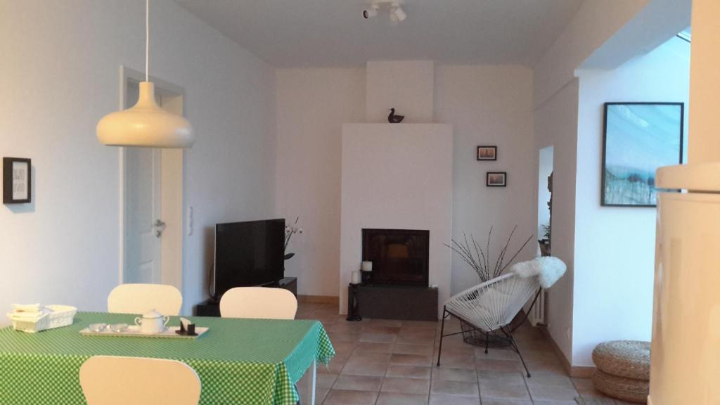 Die Ferienwohnung verfügt über 1 Schlafzimmer mit Boxspringbett.1Wohnraum mit integrierten Wintergarten, Kamin,Schlafsofa ,Essbereich, Flachbild TV,und direktenZugang zur Dachterrasse. Die Küche ist voll ausgestattet.1Badezimmer mit einer Nostalgie Badewanne . Die Fewo liegt in der 1. Etage. Ein privater Parkplatz steht an der Unterkunft zur Verfügung. Fahrräder können gesichert untergestellt werden. Haustiere sind erlaubt.