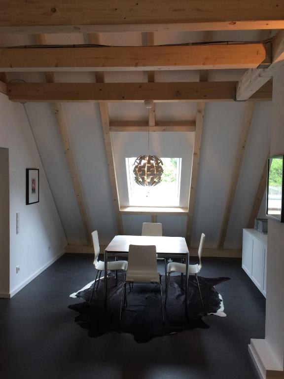 Die Unterkunft umfasst ein großes Wohn-/Esszimmer, ein Schlafzimmer, einen erhöhten Bereich mit einem Schreibtisch, ein Badezimmer mit einer Badewanne sowie eine voll ausgestattete Küche mit einem Backofen und einem Geschirrspüler. Ein Flachbild-TV der Marke Loewe, eine Stereoanlage/CD-Player und eine Bose-Dockingstation sind ebenfalls vorhanden. Alle Etagen sind hypoallergen.