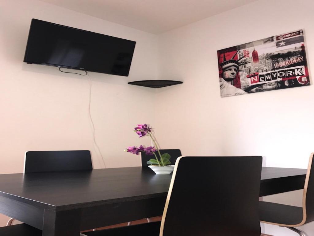 Die klassisch eingerichteten Zimmer in diesem Apartment sind schlicht eingerichtet und verfügen über einen Sitzbereich mit einem TV und einem DVD-Player. Das moderne Bad ist mit schwarzen Fliesen, einer Badewanne und einem Haartrockner ausgestattet.