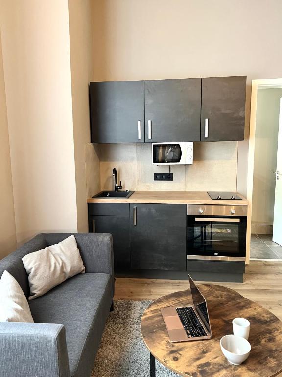 Dieses Apartment verfügt über 1 Schlafzimmer, eine Küchenzeile mit einem Kühlschrank und einem Backofen, einen Flachbild-TV, einen Sitzbereich und 1 Bad mit einer Dusche. Handtücher und Bettwäsche werden im Apartment gestellt.