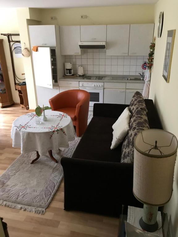 Große lichtdurchflutete Wohnung mit Terrasse in süd-westlicher Lage. Eine Küchenzeile mit diversen Haushaltsgeräten stehen Ihnen zur Verfügung (Kaffeemaschine, Eierkocher,Toaster, Wasserkocher...). Der großzügige Essplatz, direkt am Fenster, lädt zum gemütlichen Verweilen und Genießen ein. Die Wohnung ist geeignet für 2-4 Personen.