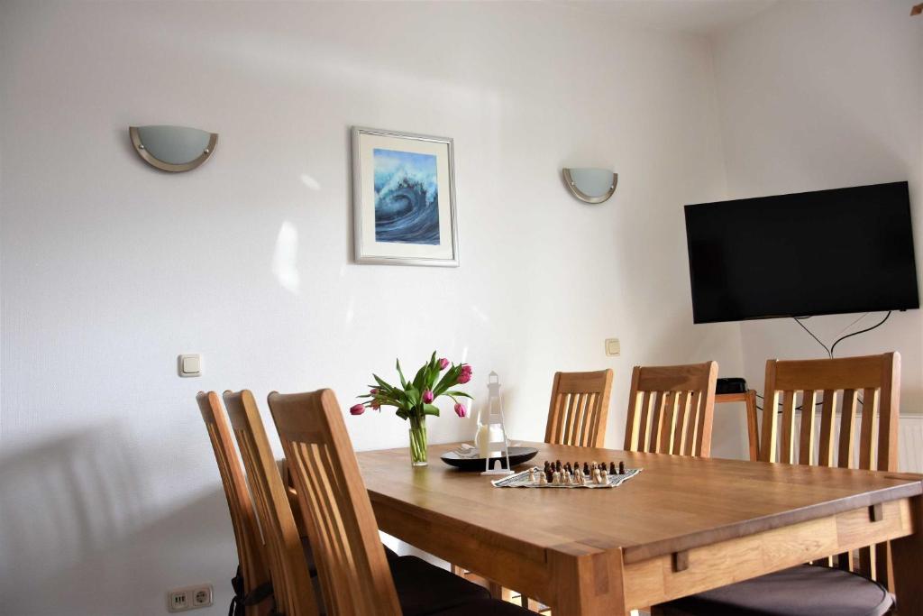 In den zwei getrennten Schlafzimmern befindet sich je ein Doppelbett (2m x 2m und 2m x 1,80m), Schrank und Ablagemöglichkeiten. Im Bedarfsfall kann die Couch im Wohnzimmer zum Bett (1,60m x 1,90m) umfunktioniert werden. Bettäsche und Handtücher können Sie gern mitbringen oder Sie nutzen den Service vor Ort und buchen das Wäschepaket hinzu. Für unsere kleinen Gäste halten wir einen Kinderhochstuhl (kostenfrei) bereit. Ein Kinderreisebett kann hinzugebucht werden. Die Kinderbettwäsche bringen Sie im Bedarfsfall bitte mit. Im rückwärtigen Bereich des Hauses befindet sich zudem ein kleiner Spielplatz. Checken Sie Ihre Mails, surfen Sie im Internet. Über den WLAN-Zugang sind Sie immer bestens informiert (Zugangsdaten erhalten Sie mit der Restzahlungsbestätigung). Natürlich finden Sie in der Wohnung auch einen modernen Flachbildfernseher mit einem Blu-ray-Player. Für kleine Gäste: kostenfreier Hochsuhl, Kinderbett für einmalig 8 Euro. Die Wohnung ist gefliest. Anschließend an die Terrasse befindet sich ein kleiner nutzbarer Wiesenbereich, abgegrenzt durch eine Hecke. Der Abstand zur Hafenkante beträgt ca. 20m. Die angrenzenden Peenewiesen laden zu gemütlichen Ausflügen ein.