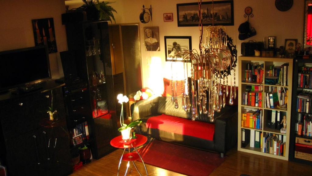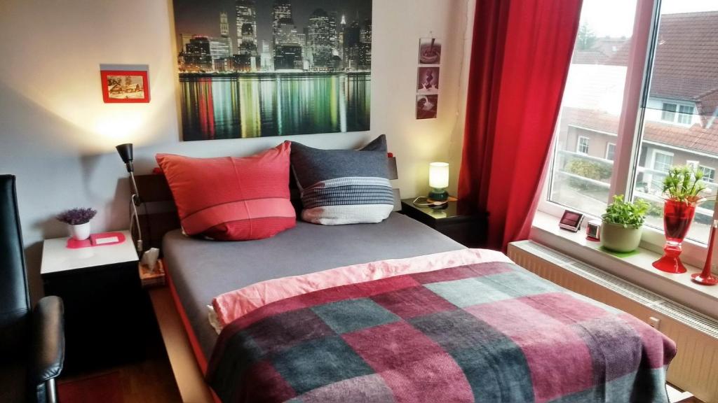 Das geräumige Apartment Hannover Messe ist in roten und schwarzen Farben gehalten und mit Holzboden ausgestattet. Es verfügt über ein Doppelzimmer sowie ein Wohnzimmer mit Doppelbett, Flachbild-TV und DVD-Player.