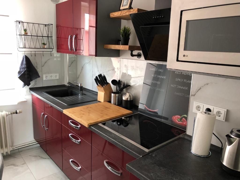Die Unterkunft Das blaue Türchen Wohnung mit Beamer und Kicker erwartet Sie mit einer Küche in Bremerhaven, 1,1 km von der Stadthalle Bremerhaven entf