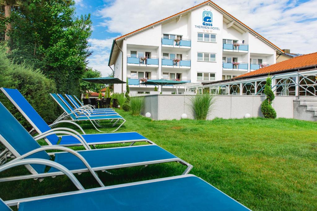 Das Wellnessangebot im Apartmenthaus Gass umfasst Massagen, Schönheitsbehandlungen sowie Aqua-Gymnastik-Kurse. Für Entspannung sorgen zudem ein Dampfbad oder ein wohltuendes Sonnenbad im Garten. In den Pools sprudelt das Thermalwasser aus der berühmten 1. Quelle von Bad Füssing, die reich an Schwefel ist.