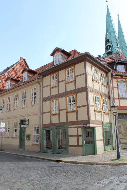 Das Fachwerkhaus auf dem Schlossberg in Quedlinburg liegt nur wenige Schritte vom Schloss Quedlinburg, 80 m von der Stiftskirche St. Servatius und 4