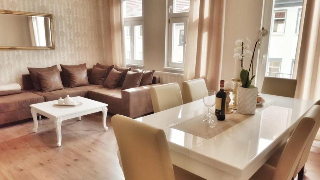 In Eisenach, 120 m vom Bachhaus Eisenach, 400 m vom Lutherhaus Eisenach und 1,9 km von der Wartburg entfernt, begrüßt Sie das Appartement am. Das Bachhaus bietet Unterkünfte mit einem Balkon und kostenfreiem WLAN. Die Unterkunft befindet sich 550 m von der Nikolaikirche Eisenach und 1,4 km vom Burschenaffendenkmal entfernt. Dieses Apartment verfügt über 3 Schlafzimmer, eine Küche mit einem Geschirrspüler und einem Kühlschrank, einen Flachbild-TV, einen Sitzbereich und 1 Bad mit einer Dusche. Das Apartment verfügt über eine Terrasse. Beliebte Sehenswürdigkeiten in der Nähe des Appartement. am. Das Bachhaus umfasst die Automobile Welt Eisenach, das Reuter Wagner Museum Eisenach und die Wandelhalle Eisenach Stiftung. Der nächste Flughafen ist der 65 km von der Unterkunft entfernte Flughafen Erfurt.