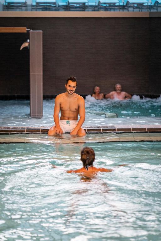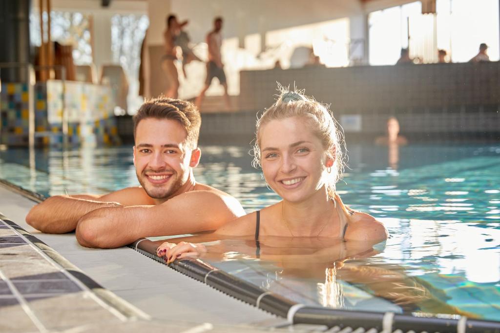 Services wie Massagen, Physiotherapie und Naturheilkundeverfahren können ebenfalls im Blumenhof gebucht werden. Ein überdachter Weg führt Sie direkt in die Wohlfühl-Therme, wo Sie in Innen- und Außenpools und bei einer breiten Palette von Wellnesseinrichtungen entspannen können.