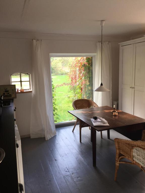 Dieses Apartment mit Gartenblick verfügt über Parkett, 1 Schlafzimmer und 1 Bad mit einer Dusche und einem Haartrockner. Die Unterkunft umfasst einen Essbereich sowie eine Küche mit einer Mikrowelle, einem Kühlschrank und einem Backofen.