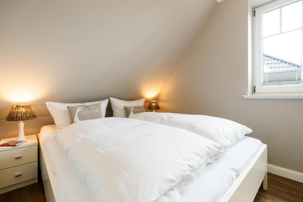 Langjährige Syltbesucher kennen es vielleicht noch: das schon fast legendäre Restaurant Lille Kamp. Wo einst lecker gespeist wurde, laden inzwischen zwei gleichnamige Appartements zum geschmackvollen Urlaub ein. Das Appartement Lille Kamp 2 erstreckt sich über zwei Etagen und hat einen kleinen Balkon. Im ersten Obergeschoss befindet sich der herrlich einladende Wohn- und Essbereich mit Couch und Sesseln, einem Esstisch sowie einer Küchenzeile. Viele hübsche Accessoires und Naturtöne machen "die gute Stube" wunderbar wohnlich. Traumhaft gemütlich ist auch das Schlafzimmer mit Doppelbett und Flatscreen an der Wand. Ein großzügig geschnittenes Duschbad macht das Obergeschoss komplett. Das Highlight bildet - im wahrsten Sinne des Wortes - der ausgebaute Spitzboden mit seinen zwei Einzelbetten und dem großen Fenster, dass freie Sicht in die Natur bietet.