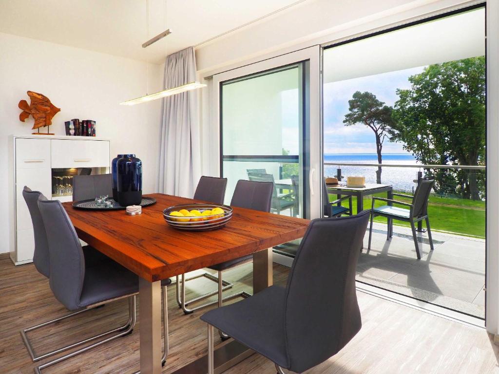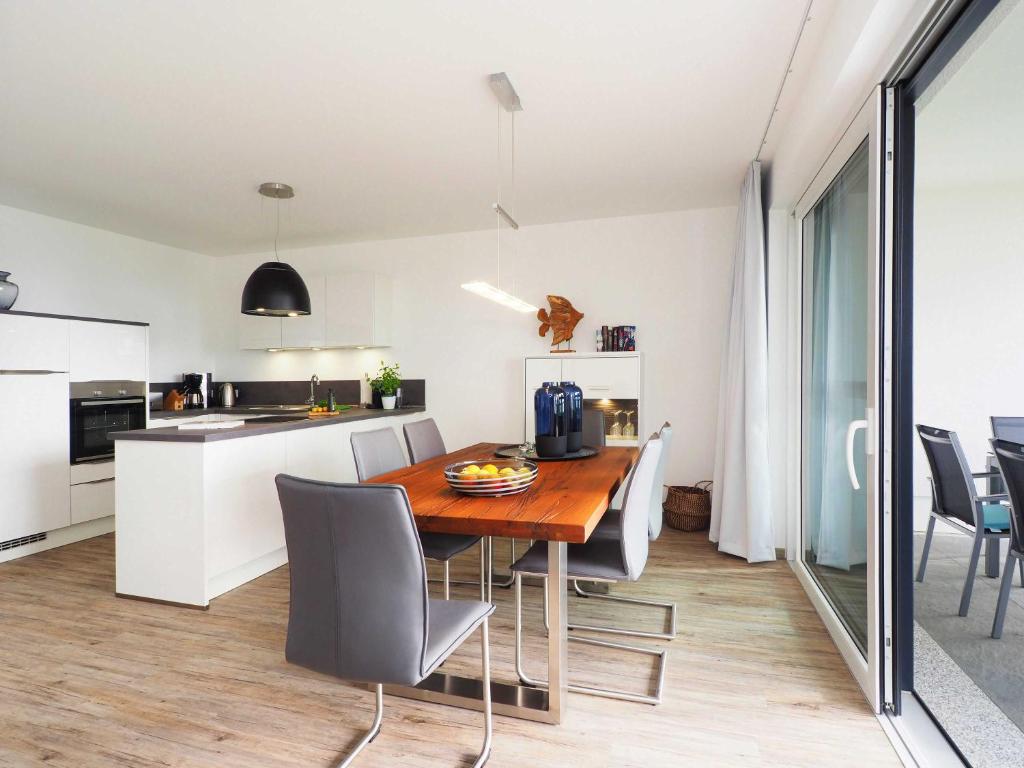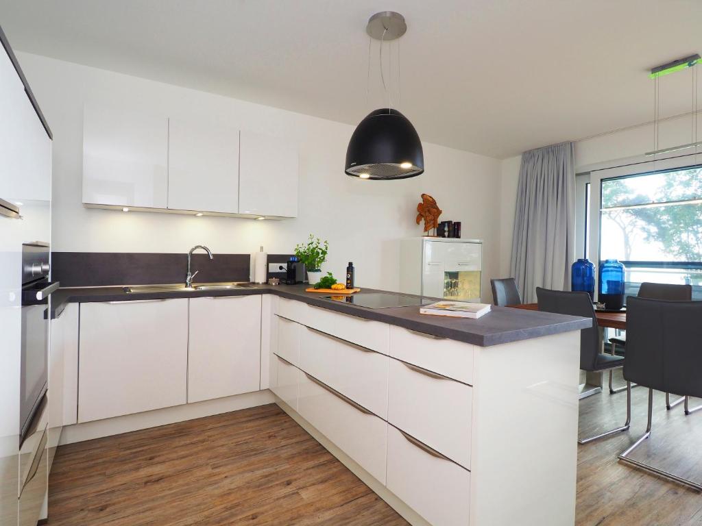 Herzlich willkommen im Appartement "Zauberhaff". Diese luxuriöse 3-Zimmer-Wohnung im ersten Obergeschoss von Haus 5 mit Platz für maximal 4 Personen und einem Baby verfügt über eine Wohnfläche von 101 m² und hat 2 Schlafzimmer sowie 2 voll ausgestattete Duschbäder. Der große Sonnenbalkon mit 17 m² liegt in idealer Süd-Ausrichtung. Die Wohnung ist modern eingerichtet mit offenem Wohn-Essbereich, großem Esstisch, Sofa sowie Smart-TV (inkl. Sky-Abo). Der fantastische Blick auf das Wasser wird Sie jeden Tag verzaubern! Alle Terrassenwohnungen und Appartements sind anspruchsvoll und modern ausgestattet. Großzügige Rasenflächen mit angelegten Gehwegen umgeben unsere Ferienhäuser. Einzelne Terrassen laden mit Sitzgelegenheiten an der Steilküste zum Verweilen ein. Räume für gemeinsamen Zeitvertreib bei Wellness und Fitness stehen Ihnen kostenfrei zur Verfügung. Freuen Sie sich auf unsere Saunen und Infrarotkabinen. Gern können Sie sich auch für eine entspannende Massage anmelden. Auf Ihre Kinder warten mehrere Außenspielplätze mit Kletterturm, Spielgeräten, Seilbahn und Bolzplatz. Bei schlechtem Wetter finden Ihre Kinder ausreichend Spielemöglichkeiten im Innenspielraum.