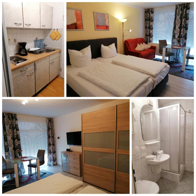 Modern eingerichtete, behagliche Appartements für 1 oder 2 Personen erwarten Sie mit hochwertiger und geschmackvoller Ausstattung. Teilweise mit feststehenden Betten oder Schrankbetten, Jedes Appartement verfügt über: Tiefgaragenplatz gegen geringe Gebühr erhältlich. Sie können Ihre Unterkunft gerne mit EC Karte oder in Bar bezahlen. Bitte beachten Sie die Kurtaxe fällt noch an pro Person. eine komplett eingerichtete Küche mit Kaffeemaschine, Wasserkocher, jeweils 2 Kochplatten, Geschirr und Töpfen eine gemütliche Sitzecke oder Couchgarnitur einen Esstisch mit Stühlen SAT-TV teilweise mit Wandhalterung (das Fernsehen vom Bett aus genießen) ein Radio eine Erstausstattung an Hotelwäsche ein Bad mit Dusche oder Badewanne (teilweise Duschen mit flachem Einstieg) einem möblierten, sonnigen Balkon