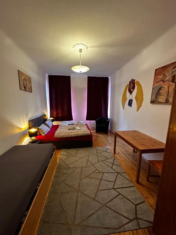 Das Apartment empfängt Sie in einer belebter Straße mit stark ausgebauter Infrastruktur und befindet sich in nur 150 Meter von Historischer Emmauskirche entfernt. Bis zum Hauptbahnhof Leipzig und damit auch bis zum Stadtzentrum sind es 3 km. Sie erreichen das Stadtzentrum mir der Straßenbahn die direkt vor dem Haus fährt ohne umsteigen und nur in 12 Minuten Die Unterkunft liegt 10 Minuten vom Folkshain Stünzer Park und hat damit gute Spaziergangsmöglichkeiten. Ihnen steht ein Flachbild-TV und eine CD-Player zur Verfügung. Das Bad umfasst eine Duschkabine für zwei Zimmer. Zusätzlich bietet das Apartment kostenloses WLAN. Die Küche (Gemeinschaftsküche für 2 Zimmer) ist mit Kochplatte, Kühlschrank. Kaffeemaschine, Wasserkocher ausgestattet. Lebensmittel können Sie im Supermarket einkaufen, von dem Sie nur 400 Meter trennen. In der Nähe befinden sich auch einige Restaurants. Alle Räume und das Treppenhaus sind Nichtraucherzonen.