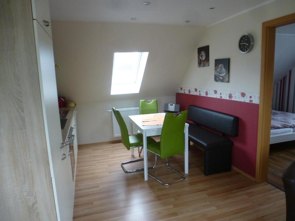 Komfortable Ferienwohnung in historischem Werfthaus Die Ferienwohnung befindet sich in einem Werfthaus, welches 2011 bis 2014 komplett saniert und liebevoll eingerichtet wurde. Dieses Haus gehört zu einer ganzen Reihe historischer Gebäude in Wilhelmshaven. Die Siedlung wurden zwischen 1872 und 1879 erbaut und ist heute die größte noch erhaltene Arbeitersiedlung (Werkssiedlung) aus dem vergangenen Jahrhundert in Deutschland. Das komplette Obergeschoss wurde als Ferienwohnung ausgebaut und auf den neusten Stand gebracht. In der Wohnküche befindet sich eine voll ausgestattete Küchenzeile mit Kaffeemaschine, Wasserkocher, Toaster, Geschirrspüler, Backofen mit vier Ceranfeldplatten, Mikrowelle und Kühlschrank mit Gefrierfach. Eine gemütliche Essecke rundet diesen Bereich ab. Der Wohnbereich lädt mit seinen Cocktailsesseln und einem 32 Zoll Flachbild Fernseher zum Relaxen ein. Die beiden Schlafzimmer sind jeweils mit einem Doppelbett (1,60 m x 2,00 m) und mit zwei Funktionsbetten (0,90 m x 2,00 m) versehen, des weiteren steht für ein Kleinkind, ein Kinder-Reisebett zur Verfügung. Das Bad ist mit einer Dusche, einer Toilette, einem Waschbecken ausgestattet.
