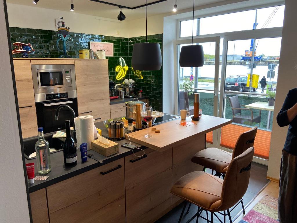 Das Atelier Achtung Ausblick! begrüßt Sie in Rendsburg, nur 35 km vom Citti-Park Kiel entfernt. Freuen Sie sich auf Unterkünfte mit Flussblick, kostenfreiem WLAN und kostenfreien Privatparkplätzen. Dieses Apartment verfügt über einen Balkon. Dieses Apartment verfügt über 2 Schlafzimmer, eine Küche mit einem Kühlschrank und einem Backofen, einen Flachbild-TV, einen Sitzbereich und 1 Bad mit einer Dusche. Handtücher und Bettwäsche werden im Apartment gestellt. An der Unterkunft steht Ihnen ein Grill zur Verfügung und in unmittelbarer Nähe des Apartments können Sie wandern. Die Sparkassen-Arena liegt 36 km vom Atelier Achtung Ausblick! entfernt und die St.-Nikolaus-Kirche erreichen Sie nach 37 km. Der nächstgelegene Flughafen ist der 59 km von der Unterkunft entfernte Flughafen Heide-Büsum.