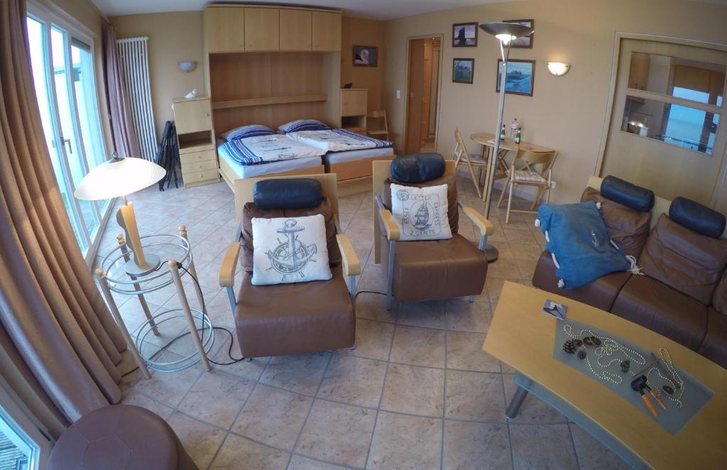 Das Atoll Apartment Meeresblick wurde im Jahr 2015 eröffnet und bietet Ihnen eine traumhafte Aussicht auf das Meer, die Dünen und den Hafen von Helgoland. Hier wohnen Sie nur wenige Schritte vom Bootsanleger entfernt.