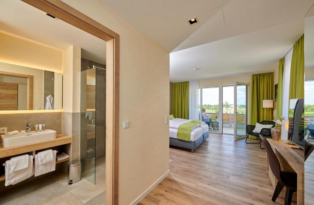 Jedes Zimmer im Resort verfügt über Klimaanlage, einen Sitzbereich, einen Flachbild-Sat-TV, einen Safe und ein eigenes Bad mit einer Dusche, Bademänteln und Hausschuhen. Einige Zimmer im Bachhof Resort Hotel bieten Seeblick und jedes Zimmer verfügt über eine Terrasse. Alle Zimmer in der Unterkunft verfügen über Bettwäsche und Handtücher.