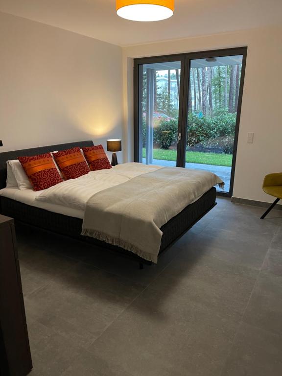 Die kürzlich renovierte Unterkunft Basalt Lodge am Lehnitzsee erwartet Sie mit kostenfreiem WLAN, Privatparkplätzen und Wassersportmöglichkeiten in Oranienburg, 34 km von der Gedenkstätte Berliner Mauer und 34 km vom Alexanderplatz entfernt. Diese Unterkunft mit Seeblick verfügt über einen Balkon. Parkplätze stehen an der Unterkunft zur Verfügung und das Apartment bietet auch eine Autovermietung, wenn Sie die Umgebung erkunden möchten. Das Apartment bietet eine Terrasse, Gartenblick, einen Sitzbereich, einen Flachbild-Sat-TV, eine voll ausgestattete Küche mit einem Geschirrspüler und einem Backofen sowie ein eigenes Bad mit einer ebenerdigen Dusche und einem Haartrockner. Ein Toaster, ein Kühlschrank, ein Kochfeld, eine Kaffeemaschine und ein Wasserkocher sind ebenfalls vorhanden. Die Unterkünfte im Apartmentkomplex sind mit Bettwäsche und Handtüchern ausgestattet. In der Nähe des Apartments können Sie angeln und wandern oder den Garten nutzen. Der Berliner Dom liegt 34 km von der Basalt Lodge am Lehnitzsee entfernt und den Berliner Fernsehturm erreichen Sie nach 35 km. Der nächstgelegene Flughafen ist der 62 km von der Unterkunft entfernte Flughafen Berlin Brandenburg Willy Brandt.