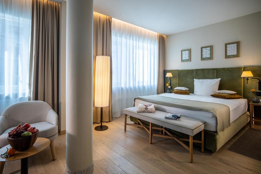 Wir bieten Ihnen Apartments für 1-5 Personen und zusätzlich pure Gemütlichkeit. Egal ob als Einzelperson, als Pärchen oder Familie, als Berufspendler, Student oder als Urlauber – in unseren Studios oder 2-Zimmer Wohnungen erwartet Sie nicht nur ein Heimatgefühl. Extra angefertigte Möbel und Design von Matteo Thun, warten darauf, dass Sie unsere Apartments mit Leben füllen. Außerdem: Wer Angst vor Wäschebergen hat, den können wir entspannt beruhigen – eine Miele Waschmaschine und ein Trockner, sowie Bügeleisen und Bügelbrett sind im Haus stets zur Stelle, wann immer Sie es benötigen. Auch Sauberkeit ist uns sehr wichtig. Unser Reinigungsteam macht den Boden regelmäßig krümelfrei, die Handtücher frisch und die Betten wieder unberührt. Wir wollen schließlich, dass es Ihnen gut geht. Gerne stellen wir Ihnen ein Kinderbett, einen Kinderstuhl oder eine Babywanne zur Verfügung. Zudem erhalten unsere kleinen Gäste ein Bilderbuch geschenkt. Wir freuen uns, dass Sie unsere Apartments mit Leben füllen. *Wir behalten uns das Recht vor, die Apartments bei Bedarf zu ändern.*