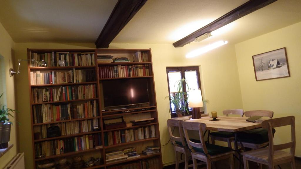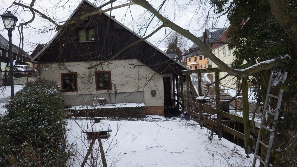 Ferienhaus aus dem 17. Jahrhundert, mitten im Kurort und doch absolut ruhig am Bach gelegen. Nachts hört man nur das Murmeln (nach Sommergewittern das Rauschen) des Baches. Über die hauseigene Brücke gehen Sie nur 50m und befinden sich im Stadtzentrum mit allen Versorgungseinrichtungen. Verlassen Sie das kleine Gartengrundstück (mit der Linde Frieda) in südlicher Richtung, kommen Sie nach nur rund 100m zum Skilift/ Sommerrodelbahn. Im Winter kann man oft direkt mit den Ski bis ans Haus fahren. Die Wanderwege beginnen praktisch auch direkt neben dem Ferienhaus. Der sogennante "Altenberger Filz" ist der älteste besiedelte Bereich der Bergbaustadt. Das Haus ist ein typischer Vertreter ursprünglichen Bergleutehäuser, diese hatten einen Ziegenstall (jetzt Küche) direkt im Haus. Die Galgenteiche mit Freibad sind nur 10 min zu Fuß entfernt. Die Schwimmhalle Raupennest liegt in 2 km Entfernung. Im Umkreis von 5 km finden Sie für weitere Aktivitäten den Skihang und Schlittschuhhalle in Geising, Bobbahn Altenberg, Duty Free und Spielcasino an der Grenze, Loipen, Rodelhänge, Bergbaumuseen und Geisingberg sowie Kahlebergberg mit Berghütten.