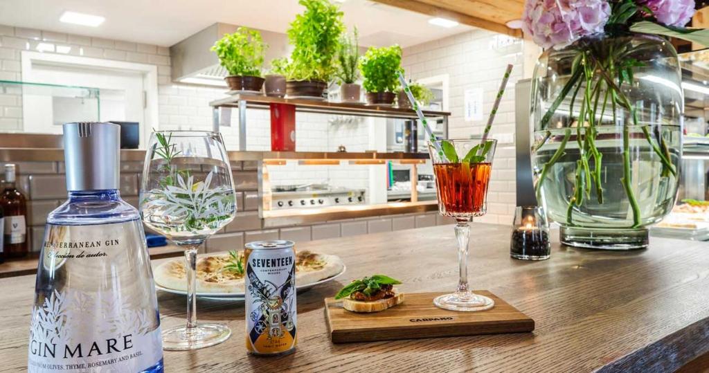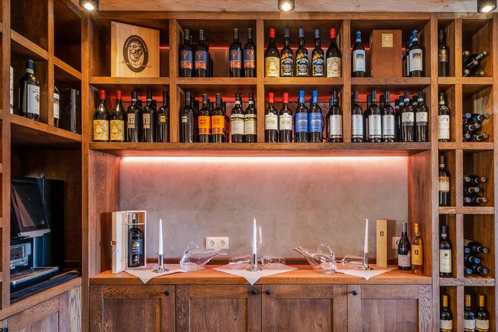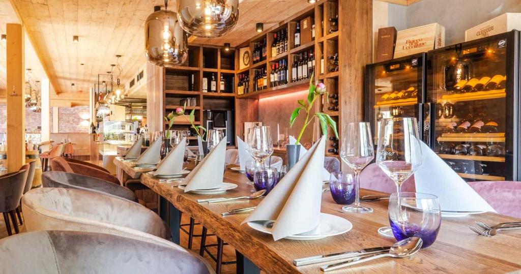 Die im Juli 2020 fertig gestellten 9 Bergwaldsuites sind als Ferienwohnung konzipiert, auf Wunsch und gegen Mehrkosten kann auch ein hotelähnlicher Service geboten werden. So kann das Frühstück gleich hinzu gebucht werden und mit einem im Montevino gebotenen Tagesgericht ist eine Art Halbpension auch möglich. Dennoch verfügen die Suiten mit durchschnittlich 50 m² Wohnfläche über eine gut ausgestattete Lack-Einbauküche, die auch die Selbstversorgung ermöglicht. Mit einem Wohn-Essraum mit über 25 m² einem geräumigen Bad mit Regendusche und einem Schlafzimmer mit Boxspringbett und geräumigem Schiebetürenschrank und einem mobliertem großen Balkon, im Ergeschoss Terrasse tragen die Ferienwohnungen die Bezeichnung “Suite” zu Recht. Einige Suiten verfügen über einen zusätzlichen Schlaf- und Spielboden, sicher ein Erlebnis für die kleineren Gäste, andere wiederum beherbergen im kombinierten Schlaf-/Duschbereich eine finnische Sauna (Wellnesssuite), die die Hitze über ein Ventil nach außen bläst, damit nicht auch das Schlafzimmer zur Sauna wird. Groß dimensionierte Smart-TVs in Wohn- und Schlafzimmer, im Wohnzimmer mit Soundbar und Subwoofer sorgen für das gewünschte Entertainment.