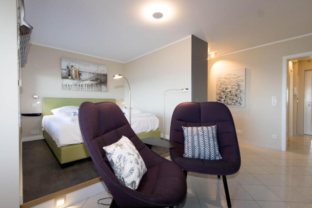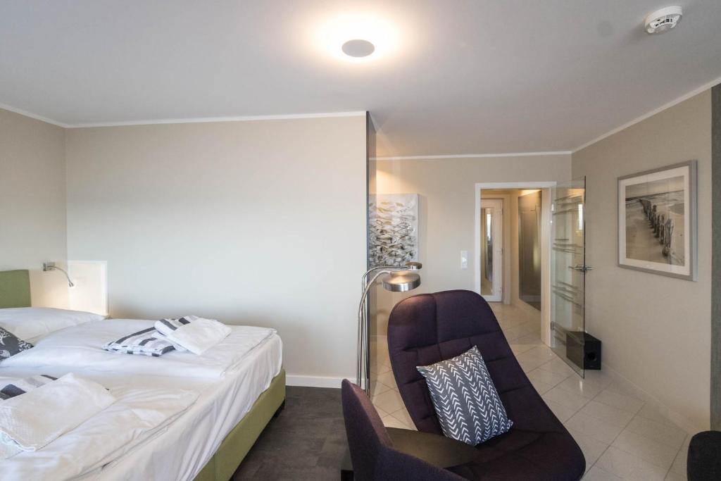 In erster Meerlinie liegt diese 1-Raum Ferienwohnung im 2. OG der "Residenz am Meer". Die örtlichen Einkaufsmöglichkeiten und der Hafen sind in nur wenigen Gehminuten zu erreichen. Der Oststrand für ein morgendliches Bad im Meer ist nur einen Katzensprung entfernt.