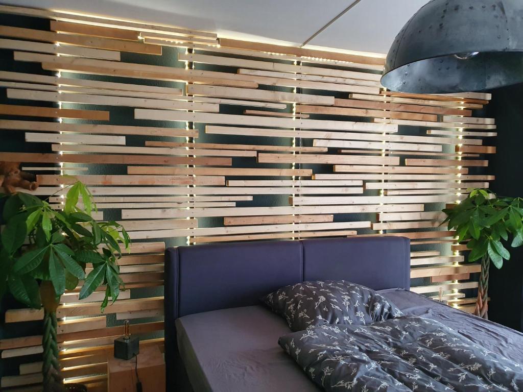 Die Ferienwohnung „Black & Wood“ liegt im Herzen der Stadt Cottbus. Sie ist stylisch und mit sehr viel Liebe zum Detail gestaltet. Sie bietet mit ihren 38 m² Platz für bis zu 2 Personen und befindet sich im Erdgeschoss, Die 1-Raum-Wohnung verfügt über einen Wohnbereich mit Doppelbett, welcher fließend in den Koch- und Essbereich übergeht. Außerdem bietet die Wohnung eine kleine, gemütliche Terrasse. Die Küche ist mit Herd, Kühlschrank, Mikrowelle, Kaffeemaschine uvm. voll ausgestattet und bietet alles, was man für ein entspanntes Frühstück oder einen gemütlichen Kochabend braucht. Zudem gibt es selbstverständlich kostenfreies W-LAN, Kaffee und Tee. In der Wohnung wurde mit Holzelementen und indirekter Beleuchtung gearbeitet, um ein angenehmes Wohnklima zu schaffen. Der mitgebrachte PKW kann kostenfrei in der Tiefgarage abgestellt werden.