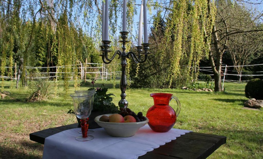 NEU: mit SCHÄFERWAGEN. Urlaub im romantischen, liebevollen Blockhaus kombinierbar mit unserem traumhaften Schäferwagen. Ein besonderes Erlebnis. Es erwartet Sie ein liebevoll mit hochwertigen massiven Landhausmöbeln eingerichtetes Ferienhaus für 2- 4 Personen. Hier genießen Sie auf 46 m² Wohnfläche gemütliche Hüttenatmosphäre. Das Blockhaus bietet Ihnen ein Wohn-/Esszimmer mit großem Tisch, Sat-TV, Stereoalnage, DVD-Player, eine gemütliche Eckbank und ein Kachelofen. Im Schlafzimmer wartet ein Doppelbett auf Sie. Ein Schlafsofa bietet Platz für zwei weitere Personen. Auf Anfrage stellen wir Ihnen gern ein Kinderhochstuhl und ein Kinderreisebett bereit. Für die gemütlichen Stunden vor dem knisternden Ofen stellen wir Ihnen einen Anfangsbestand von Kaminholz zur Verfügung. Es handelt sich um ein Nichtraucherhaus. Im Schäferwagen können 2 weitere Personen übernachten. Er hat eine Größe von 12 m². Sie schlafen in einem 140 x 200 cm Bett mit Blick in den Garten. Der Wagen ist nur zusammen mit dem Haus als seperates Schlafzimmer buchbar. Der Wagen hat eine Elektro-Heizung und ist nur von April bis 15. Oktober geöffnet. Für Frischluftfans geht es auch außerhalb dieser Zeit.