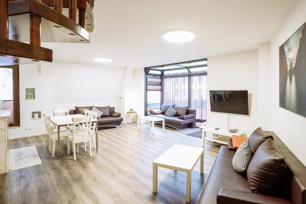 Die hellen Apartments im Boardinghouse Rosenstraße sind in neutralen Farben gehalten und mit modernen Möbeln eingerichtet. Jede Unterkunft verfügt über einen Flachbild-TV im Wohnzimmer, separate Schlafzimmer und eine Videogegensprechanlage.