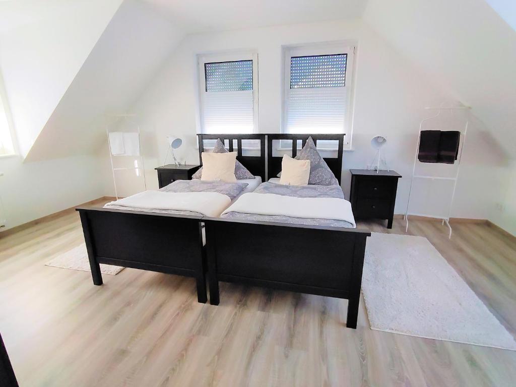 Im Haus "ZUR ABTEI" befinden sich 3 Wohnungen, die alle neu erbaut wurden und vorzugsweise an Geschäftsreisende vermietet werden. Die Wohnung im EG und im 1. OG verfügen über 2 Einzelschlafzimmer, die Wohnung im DG verfügt über ein Schlafzimmer mit 2 Einzelbetten oder Doppelbett, sowie ein Einzelschlafzimmer. Die DG Wohnung hat eine sehr schöne Terrasse direkt vor der Wohnung und ist ebenso für Urlauber geeignet. Alle Wohnungen sind sehr hochwertig ausgestattet mit moderner Küche mit jeglichem Komfort und Essplatz. Die Badezimmer sind alle mit ebenerdiger Dusche und Waschbecken. Ein separates WC rundet das Angebot ab. Gesicherte Parkplätze sind direkt vor dem Haus.