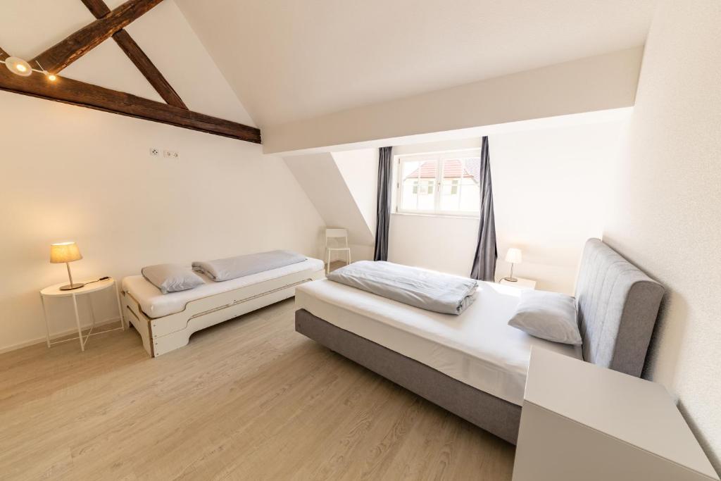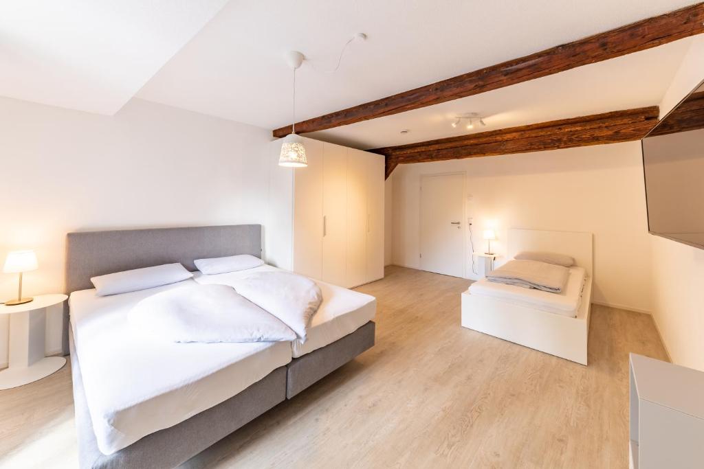 Im Zentrum von Kenzingen, befinden sich unsere neuen, denkmalgeschützten Ferienwohnungen. Das ehemalige Brauereigebäude wurde um 1600 errichtet und befindet sich in einer sehr zentralen Wohnlage am Kirchplatz in Kenzingen. Das Gebäudeensemble erfuhr in den letzten Monaten eine detailgetreue Sanierung. Vorhandene Fassadendetails wurden originalgetreu wieder hergestellt. Entstanden sind nun 5 hochwertige Ferienwohnungen, teilweise als Maisonette- bzw. Loftwohnungen. Allen Wohnungen steht ein PKW-Stellplatz zur Verfügung. Keller und Fahrradstellplätze sowie Abstellplätze für Kinderwägen sind vorhanden. Die Beheizung der Wohnung erfolgt durch Fußbodenheizung. Die gehobene Ausstattung bezaubert die Gäste mit liebevollen Details, freundliche Bäder mit formschönen Armaturen runden die Wohlfühl Atmosphäre ab. Auch wurde auf langfristige Werthaltigkeit und Qualität besonderen Wert gelegt. Großformatige Steinfliesen geben den Wohnräumen in Verbindung mit dem historischen Gebäude einen besonderen Charakter.