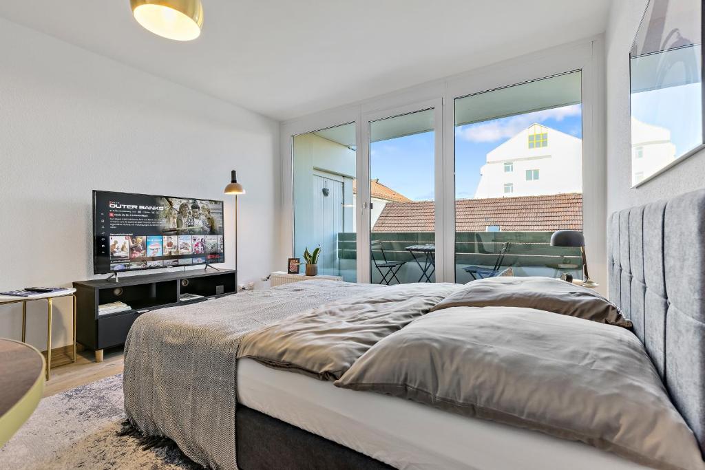 Das Apartment verfügt über 1 Schlafzimmer, 1 Bad, Bettwäsche, Handtücher, einen Flachbild-Sat-TV, eine voll ausgestattete Küche und einen Balkon mit Stadtblick.