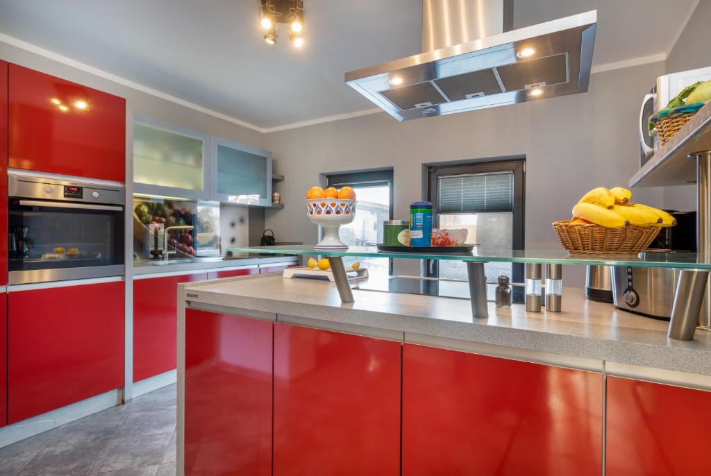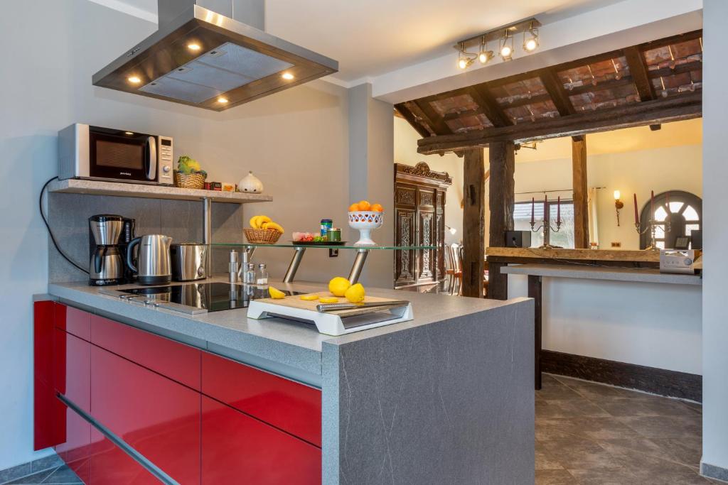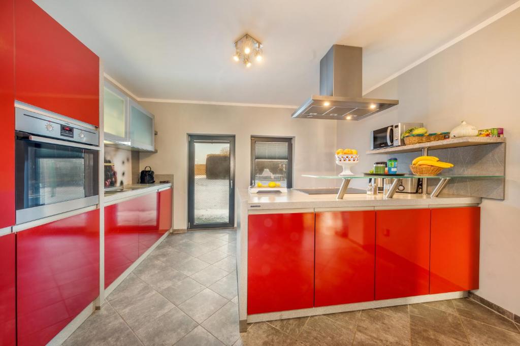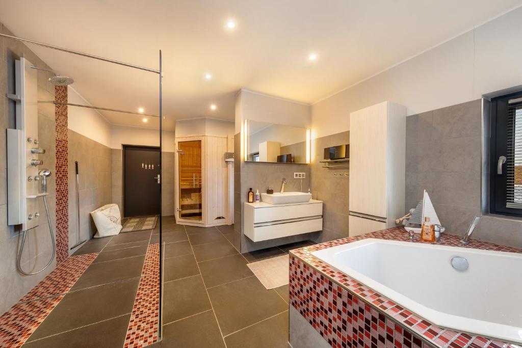 Die Unterkunft umfasst einen Sitzbereich, einen Essbereich und eine moderne Küche mit einem Geschirrspüler, einem Backofen und einer Mikrowelle. Zur Ausstattung gehören ein Flachbild-Sat-TV und ein Kamin. Eine Terrasse lädt am Ferienhaus Carpe Diem Breege zum Entspannen ein.