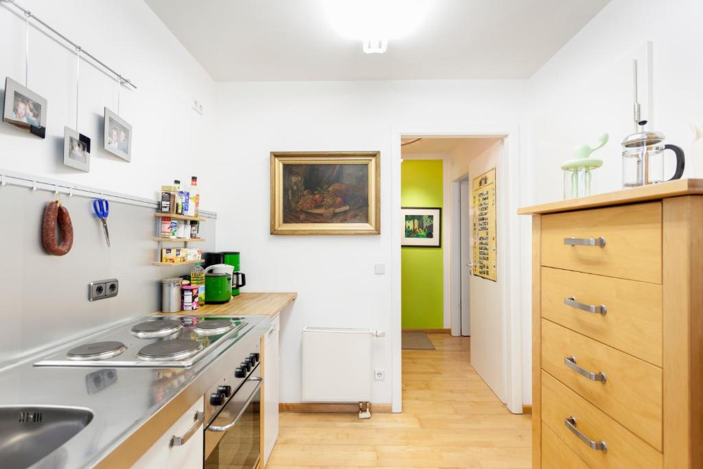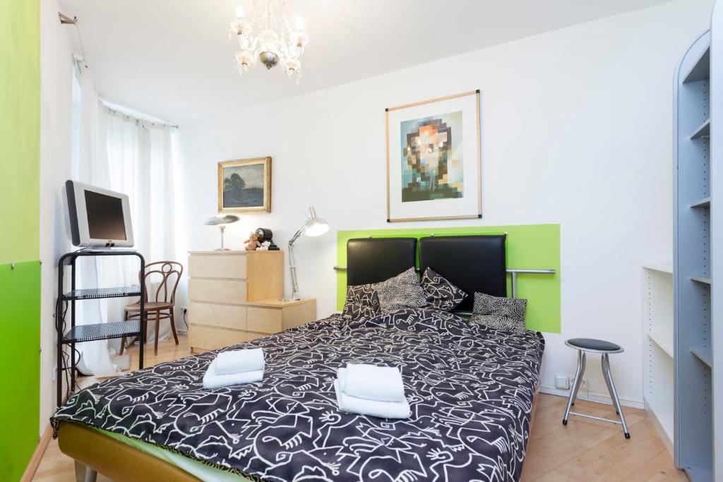 Das Apartment umfasst 1 Schlafzimmer, ein Wohnzimmer, eine voll ausgestattete Küche mit einem Kühlschrank und einer Kaffeemaschine sowie 1 Bad mit einer Dusche und einem Haartrockner. Handtücher und Bettwäsche werden im Apartment gestellt.