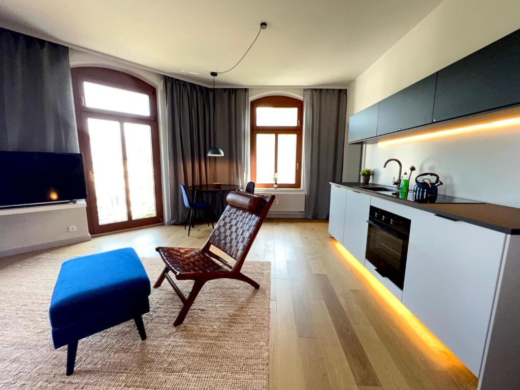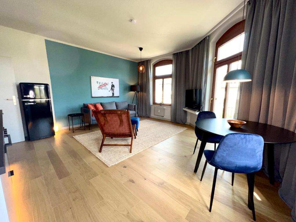 Das Stilvolles Apartment mit Balkon / Netflix + WIFI & zentrumsnah begrüßt Sie in Chemnitz weniger als 1 km von der Messe Chemnitz und 2,6 km vom