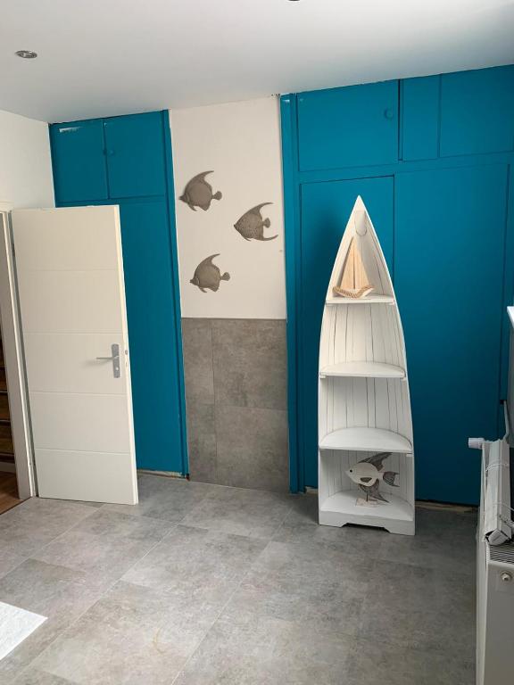 Die Unterkunft Das blaue Türchen Wohnung mit Beamer und Kicker erwartet Sie mit einer Küche in Bremerhaven, 1,1 km von der Stadthalle Bremerhaven entf