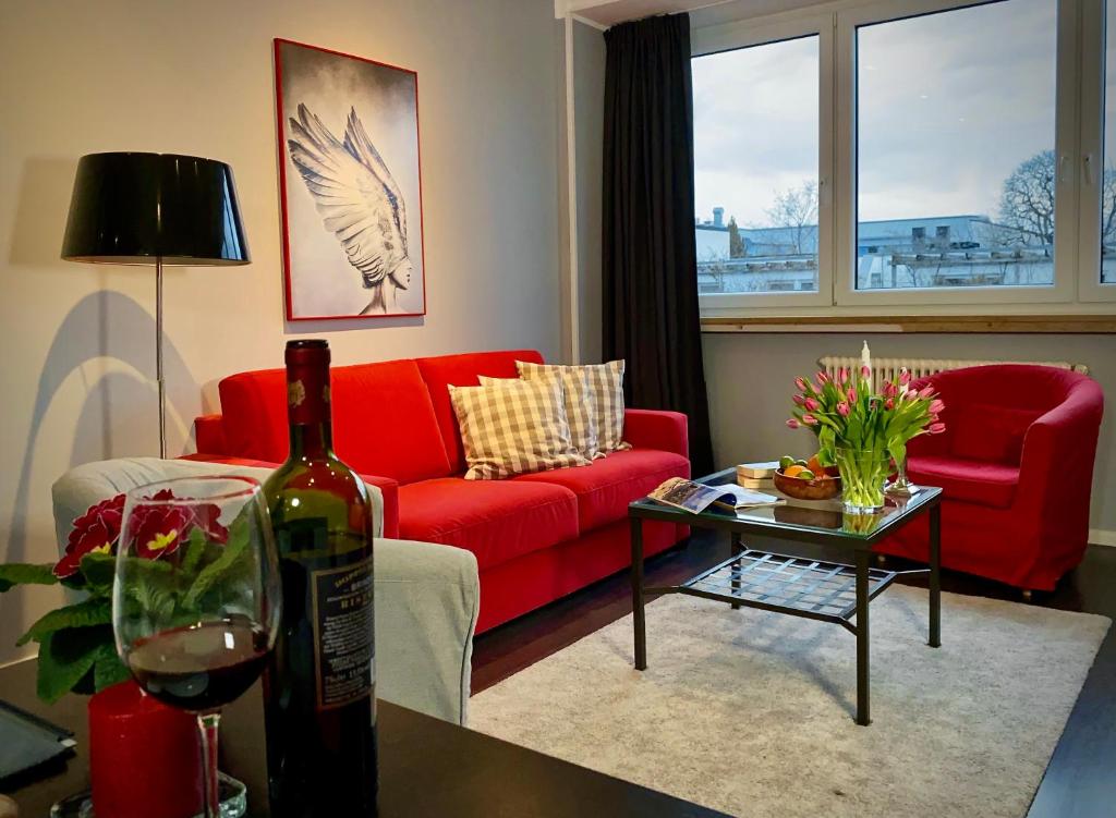 Jede Wohneinheit verfügt über eine voll ausgestattete Küche mit einem Geschirrspüler, einen Sitzbereich, einen Flachbild-TV, eine Waschmaschine und ein eigenes Bad mit einer Badewanne oder einer Dusche und einem Haartrockner. Eine Mikrowelle, ein Kühlschrank, ein Backofen, ein Wasserkocher und eine Kaffeemaschine sind ebenfalls vorhanden.