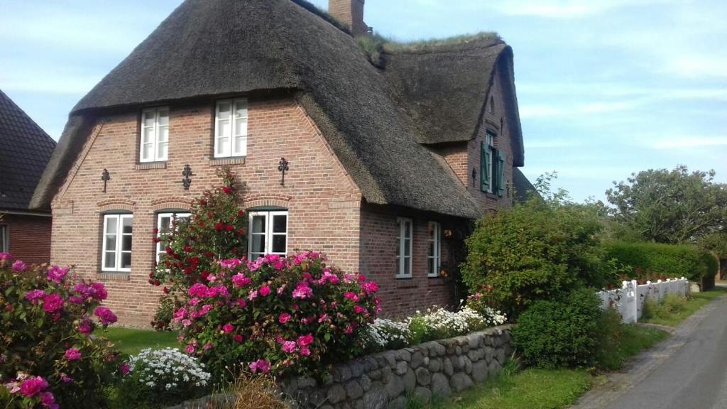 Das Haus ist ein traditonelles Föhrer Reetdachhaus und steht auf einem ca. 1000 m² großen Gartengrundstück, einer ehemaligen Kälberwiese, mitten im Dorf Utersum. Es ist von ca. 150 Rosenstöcken umgeben, darunter sehr seltene historische Rosen und Wildrosensorten. Beim Bau des Hauses wurde auf die Verwendung von natürlichen, oftmals antiken Baustoffen geachtet. Zentrale Lage: Jeder Ort des Dorfes sowie den Bäcker, Lebensmittelladen oder die fünf Gaststätten und Cafés Utersums in wenigen Gehminuten zu erreichen. Unsere neu eingerichtete Ferienwohnung, befindet sich im hinteren, sogenannten "Scheunenteil" des Hauses. Auf zwei Ebenen liegen die beiden urgemütlichen, mit viel Liebe zum Detail eingerichteten Zimmer. Ihre Wohnung besitzt einen separaten Eingang mit einer traditionellen, zweiteiligen "Klöntür". Durch den Rosengarten gelagen Sie unmittelbar von Ihrem eigenen Parkplatz in die Wohnung. Wände mit antiken Delfter Fliesen und Fußböden mit gut erhaltenen, ca. 300 Jahre alten Terracotta-Fliesen sowie zahlreiche, meist maritim geprägte Grafiken sorgen für ein ausgesuchtes, behagliches Ambiente.