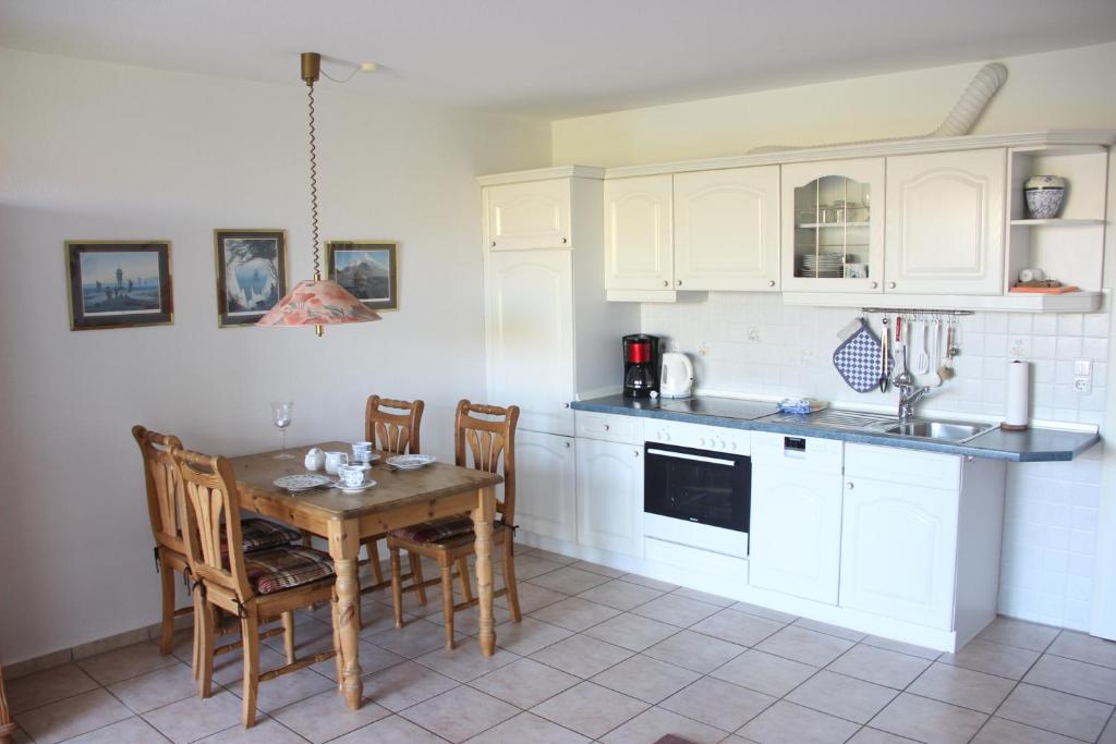Die Küchenzeile ist mit einem Geschirrspüler ausgestattet. Handtücher und Bettwäsche werden im Deichblick gestellt.